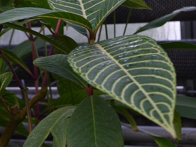 葉の色は緑色で、白い葉脈が目立つ。