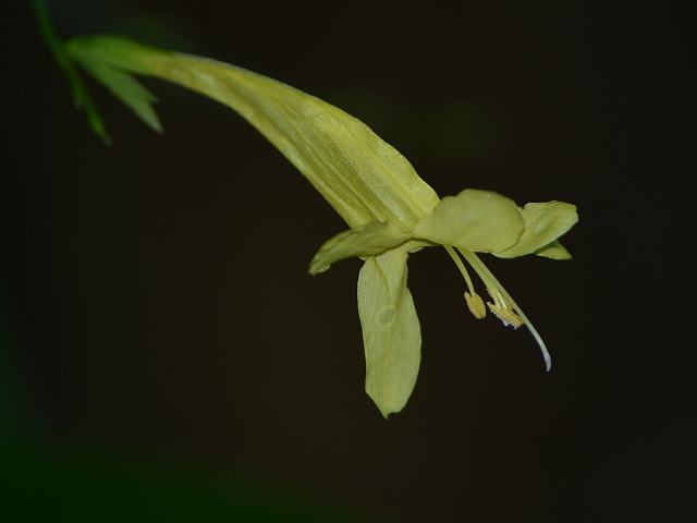葉の脇から花茎を伸ばし、白ないしクリーム色をした筒状の花をつける。