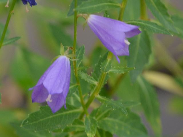 茎先に紫色をした鐘形の花を数輪つける。