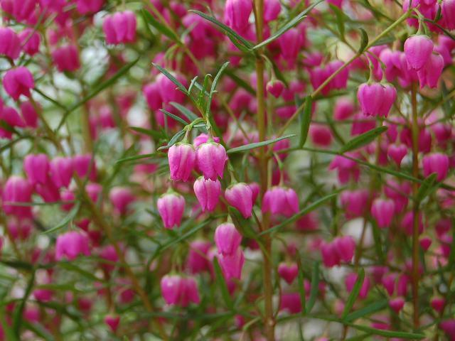 釣鐘形をした小さなピンク小花をたくさんぶら下げる。