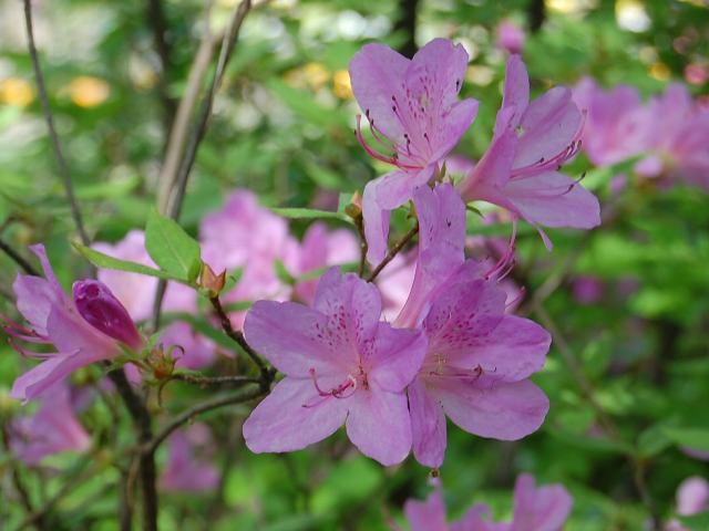 花径3~6センチくらいの淡い紅紫色をした花を枝先に2~3輪ずつつける。