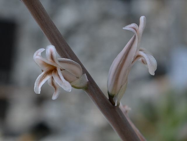 20センチから30センチの花茎を伸ばし、小さな筒状の花をつける。