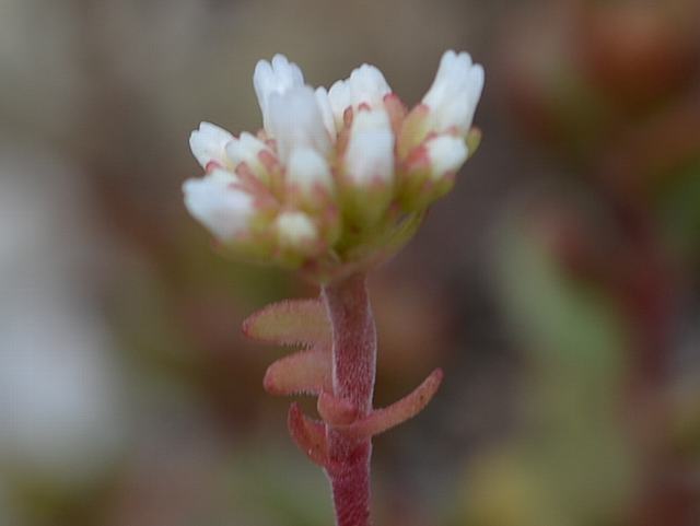 葉の脇から集散花序(枝先に花がつき、その下から枝が出て花をつけることを繰り返すもの)を出し、白い小さな花をたくさんつける。