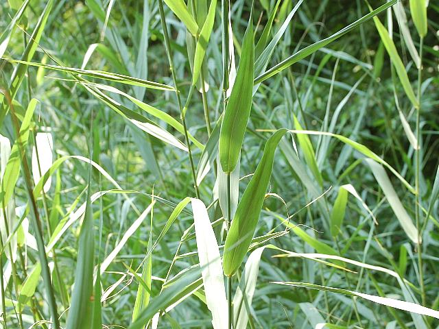 茎先に円錐花序(下のほうになるほど枝分かれする回数が多く、全体をみると円錐形になる)を出し、小穂をまばらにつける。