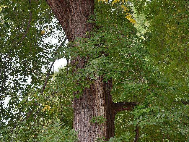 樹皮は暗い灰褐色で、縦の裂け目が目立つ。