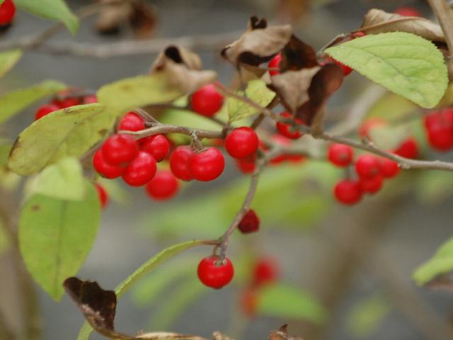 梅擬き(ウメモドキ)はモチノキ科モチノキ属の落葉低木である。